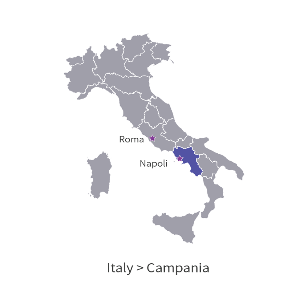 캄파니아는 라치오의 남쪽에 위치한 티레니아해 연안에 맞닿아 있으며 주도는 나폴리입니다. 캄파니아는 라틴어에서 그 유래를 찾으면 ‘풍부한 땅’으로 해석이 되는데 그만큼 비옥한 토양을 자랑하는 곳입니다. 최적의 떼루아로 고대 로마 시대에는 가장 뛰어난 와인을 생산하는 와인 산지였습니다.